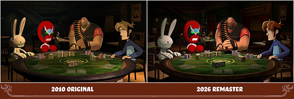 Skunkape Games' remaster includes overhauled graphics and lighting, gameplay fixes to improve the poker simulation, and new unlockables and quality-of-life features. The game was updated using the same engine and process as the team's recent remasters of Telltale's Sam & Max trilogy.